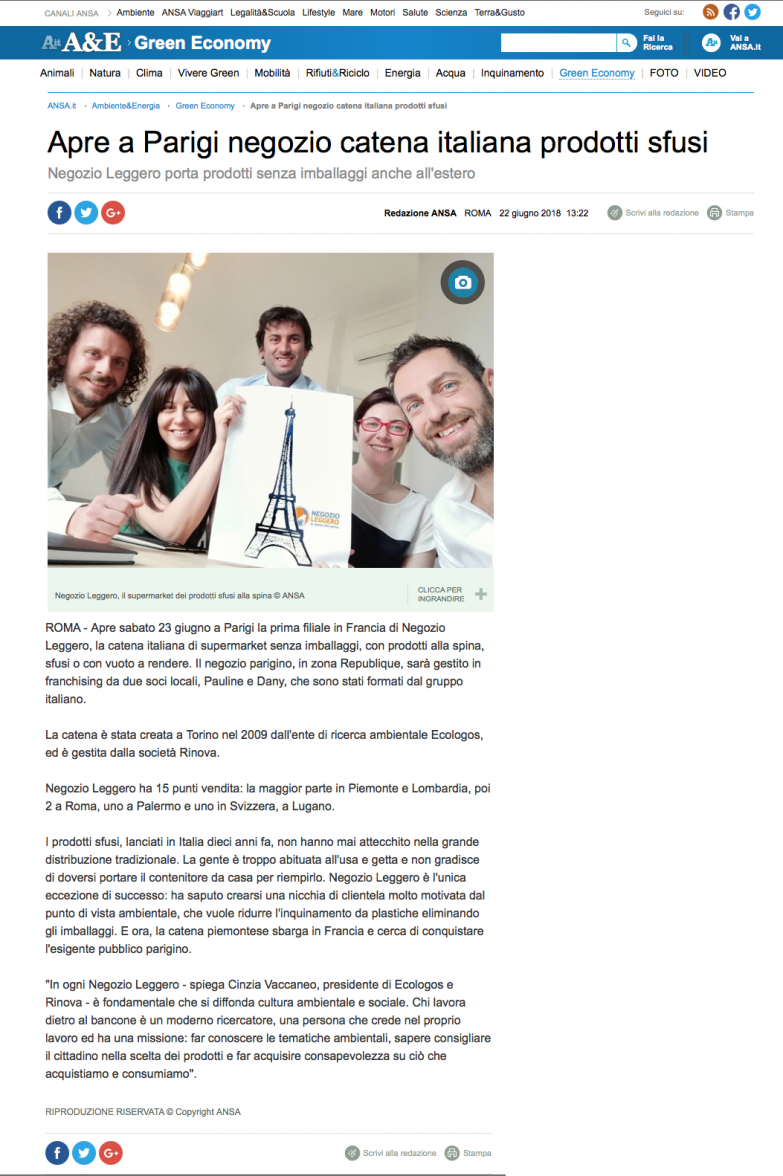La prima filiale in Francia di Negozio Leggero.