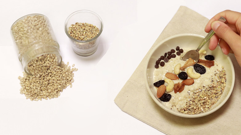 Metti la tua crema di riso in una coppetta e aggiungi frutta di stagione o secca e semi oleosi.