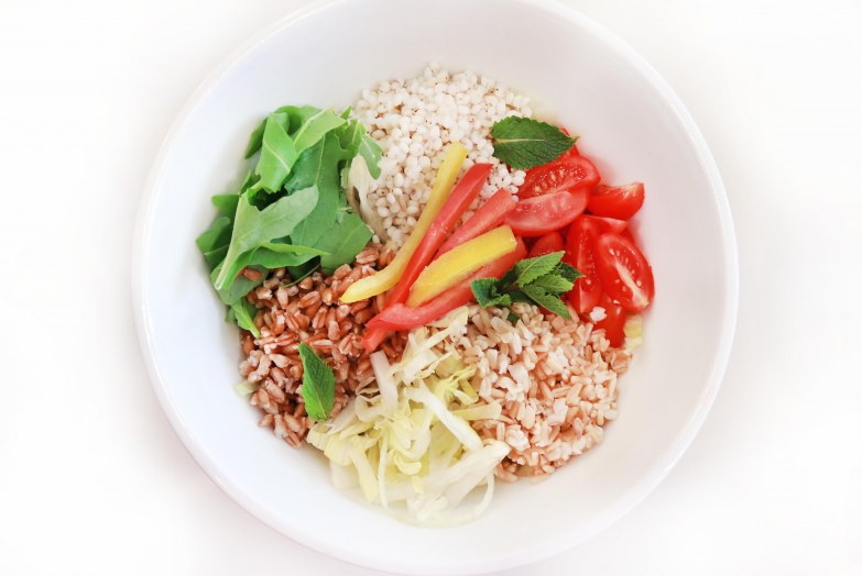 Insalata mista di cereali con verdure crude
