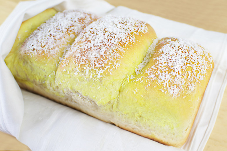Un suggerimento in più? Se hai ancora un pochino di latte di cocco, spennella la superficie del pane e spolveralo con una manciata di farina di cocco.
