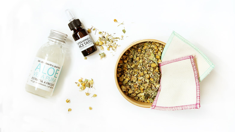 Prepara l’infuso scaldando l’acqua fino a 80° e aggiungendo la camomilla e melissa come se dovessi preparare una normale tazza di tisana. Lascia in infusione per 5 minuti, filtra e lascia raffreddare. Dopodiché inserisci i pad all’interno della tisana che andrai a mettere ancora in frigorifero per almeno mezz’ora. Nel frattempo mescola in una tazza un cucchiaio di aloe vera con 6 gocce di vitamina E e applica il composto sul contorno occhi da trattare, soprattutto sulla zona delle occhiaie e su quella delle rughe. Massaggiare fino a completo assorbimento.