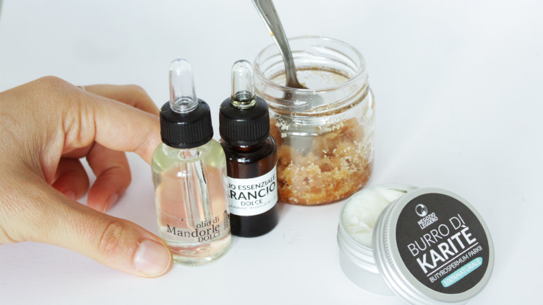 Metti in una ciotola lo zucchero, il burro di karité e l’olio di mandorle dolci. Mescola bene, aggiungi l’olio essenziale di arancio dolce e riponi il preparato in un vasetto e usalo una volta alla settimana.