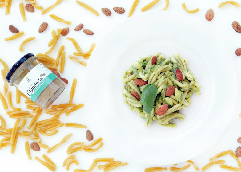 Strozzapreti vegan al pesto di zucchine e mandorle