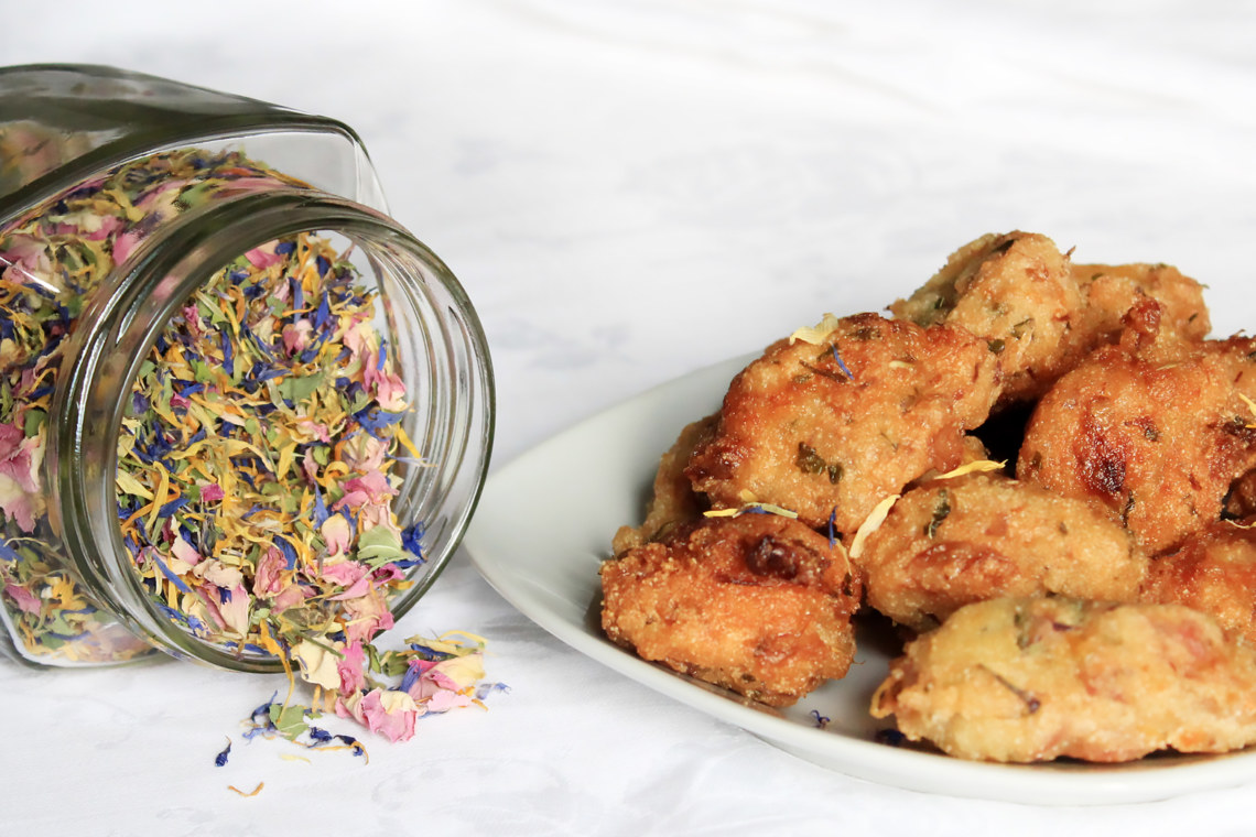 15 min + tempo di riposo di 3 ore Difficoltà facile Per circa 20 frittelle 1 cucchiaino di lievito di birra* 150g di semola di grano duro* 400 ml circa acqua frizzante (aggiustare lavorando la pastella) 8 g misto fiori per cucinare* sale* olio di semi per friggere *prodotti disponibili presso Negozio LeggeroMettere il lievito e la semola in un contenitore. Aggiungere l'acqua frizzante poco per volta…
