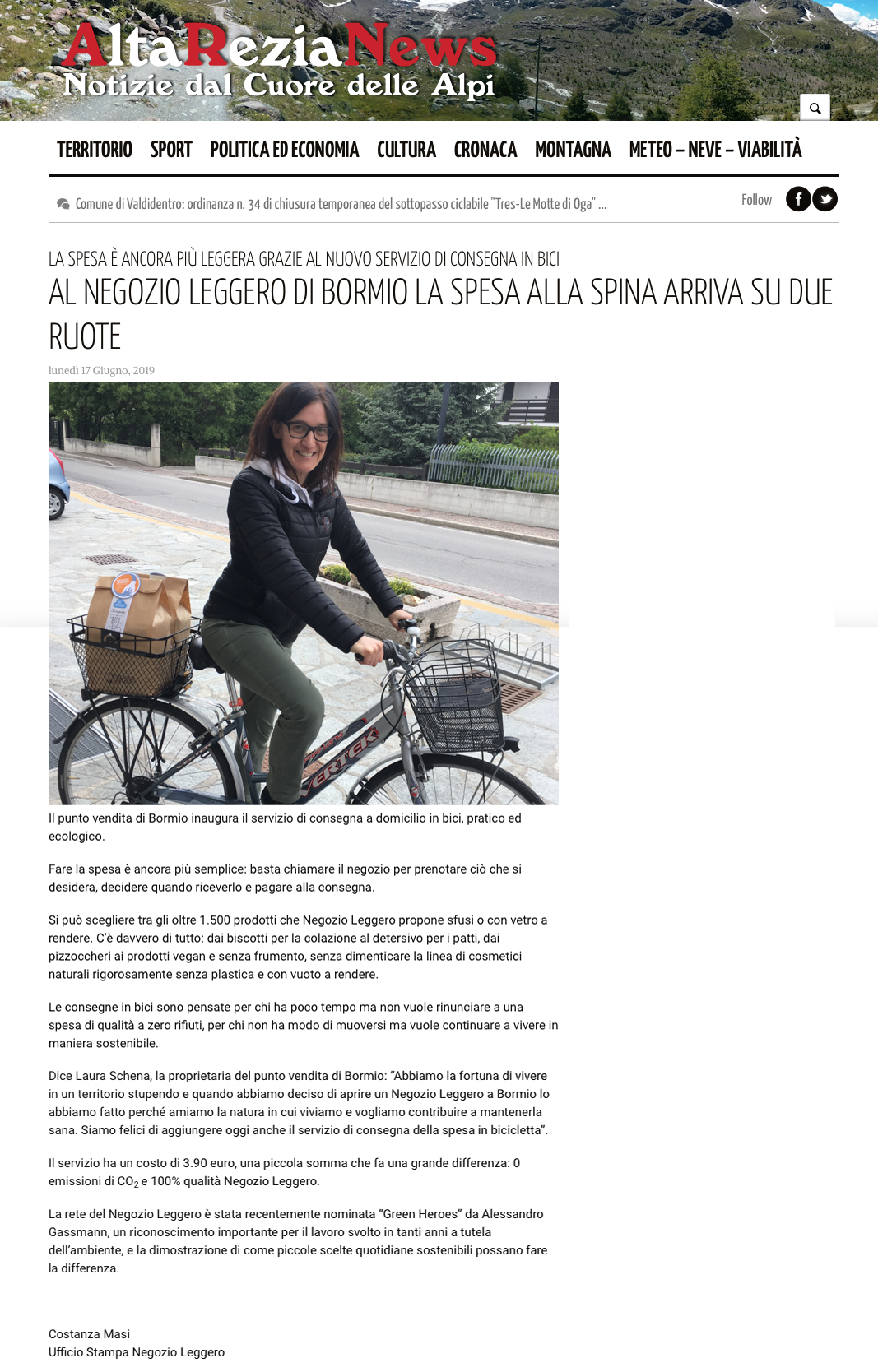 Al Negozio Leggero di Bormio arriva la consegna in bici.