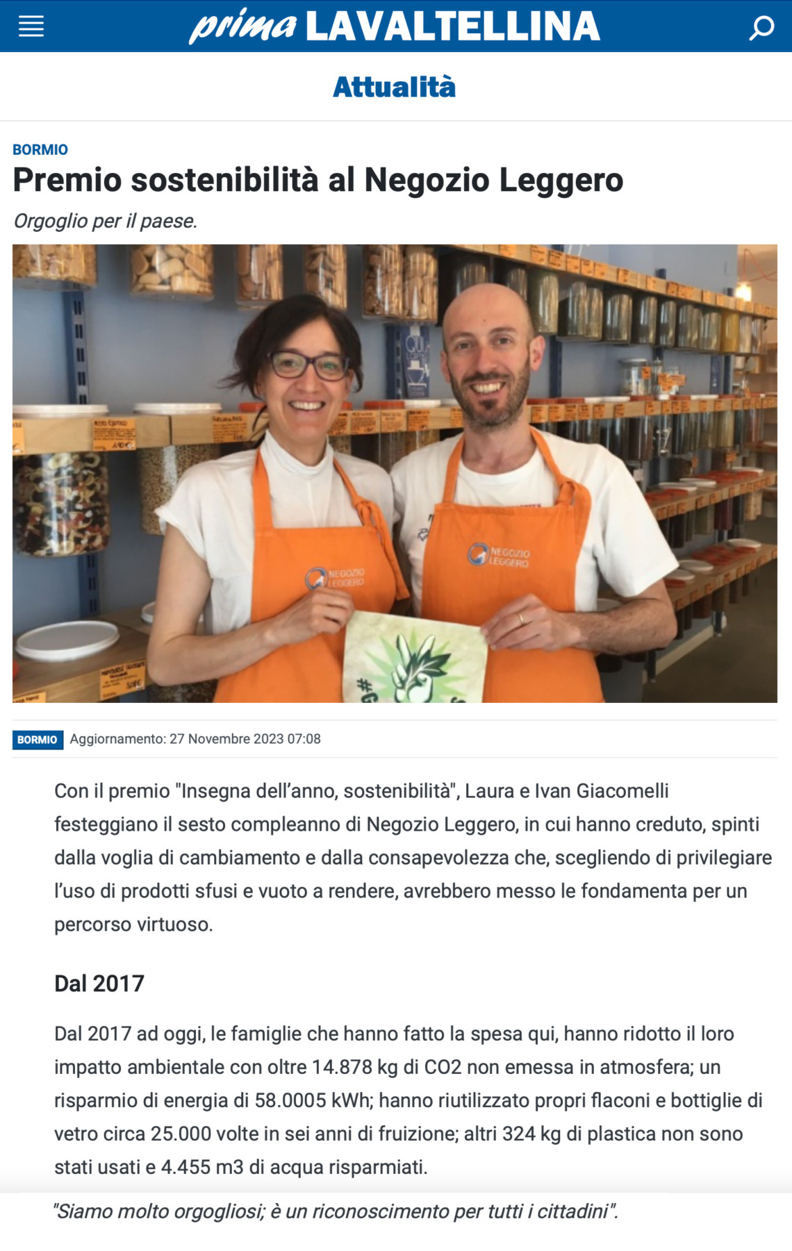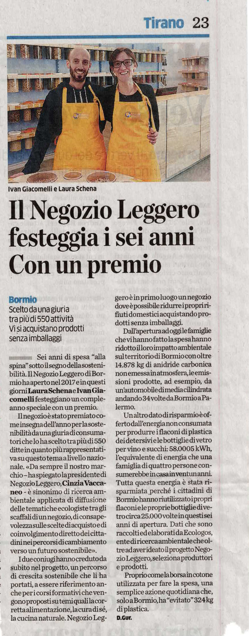 Il Negozio Leggero festeggia i 6 anni con un premio